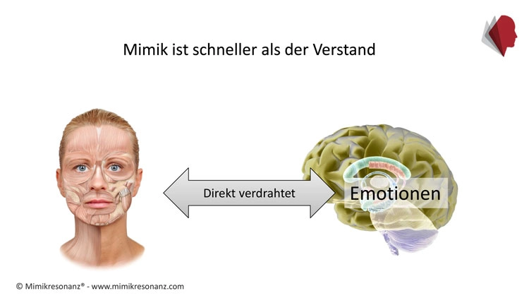 Unsere für die Mimik zuständigen Gesichtsmuskeln sind direkt mit unserem Emotionszentrum – dem limbischen System- verbunden. Emotionen zeigen sich kulturübergreifend mit identischem mimischem Ausdruck.