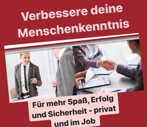 - Workshop „MENSCHENKENNTNIS -Einführung in das Face Reading“Samstag, 18. April 2026 – 9.00 – 17.00 Uhr Verbessere Deine Menschenkenntnis in nur einem Tag und lerne Dich selbst und andere besser und leichter kennen. BESCHREIBUNG: In diesem aktiven und spannenden… Workshop „MENSCHENKENNTNIS -Einführung in das Face Reading“ weiterlesen
